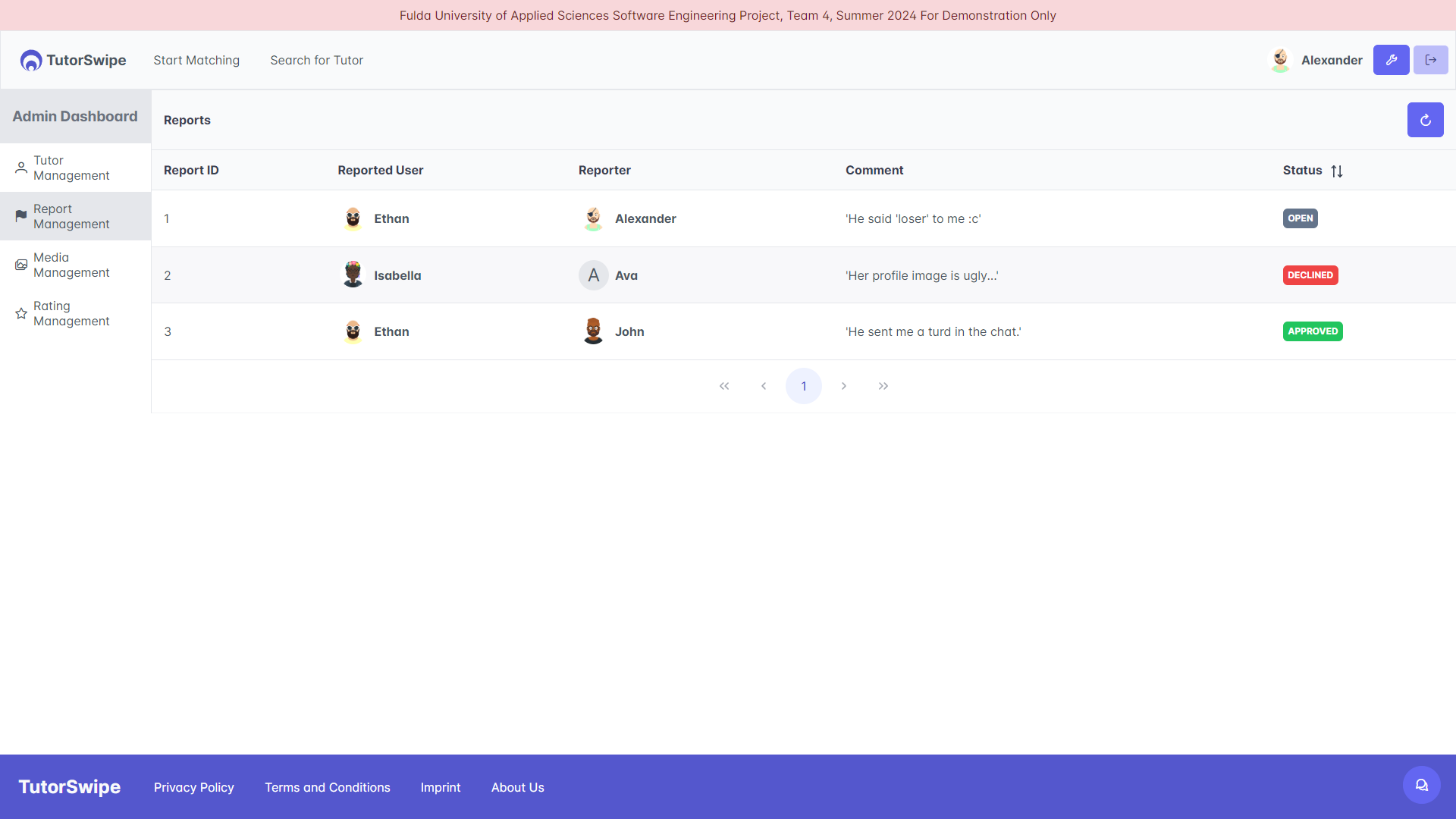 Admin Dashboard - Report Management