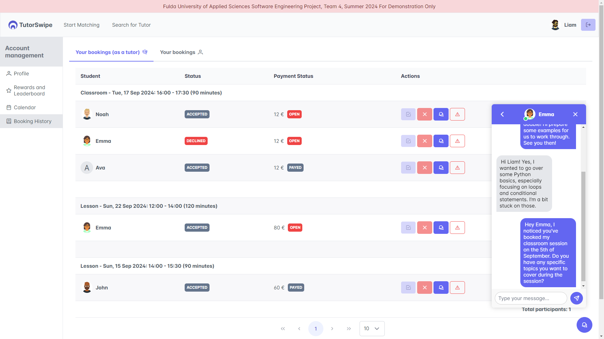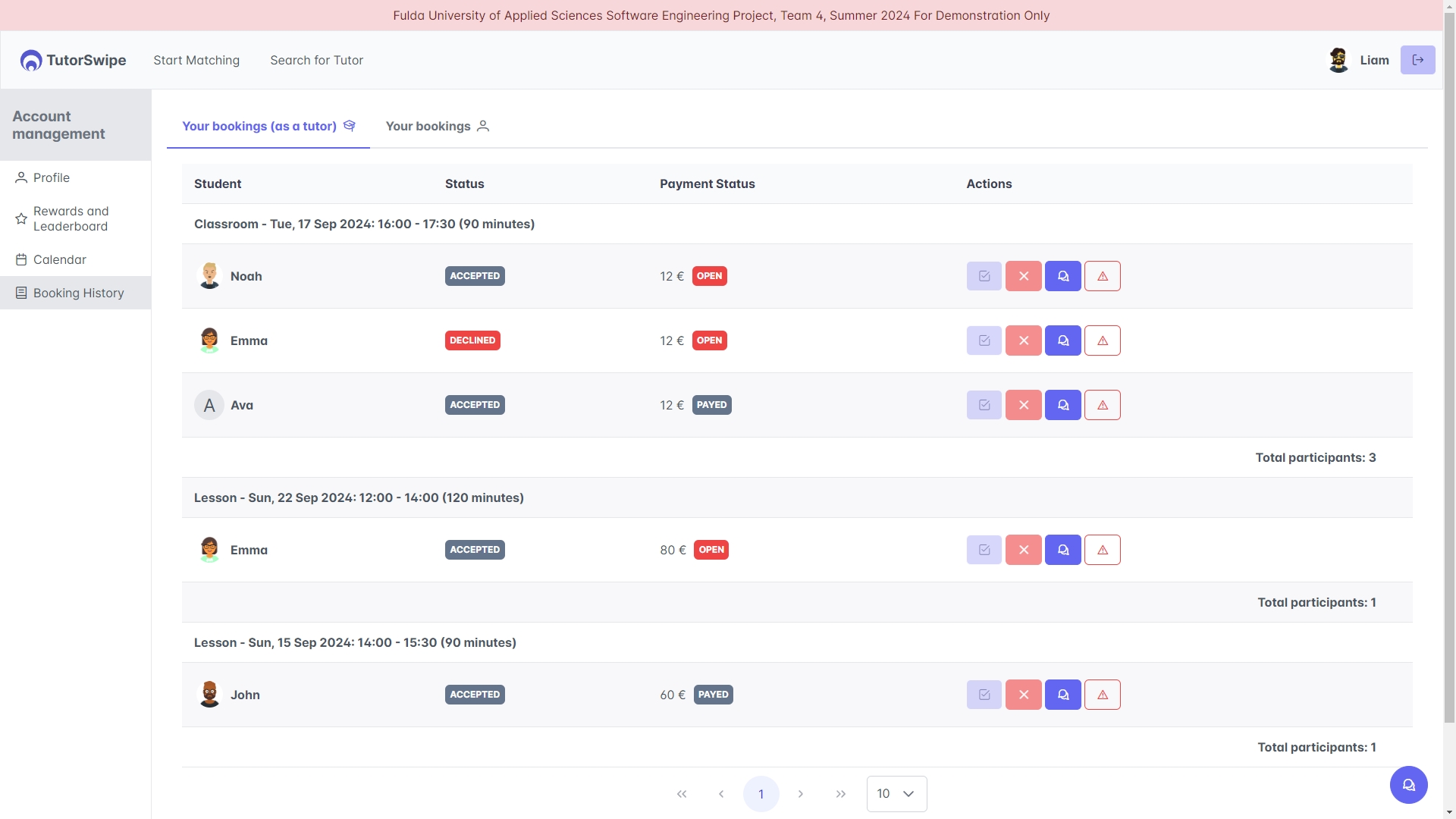 Tutor Booking History